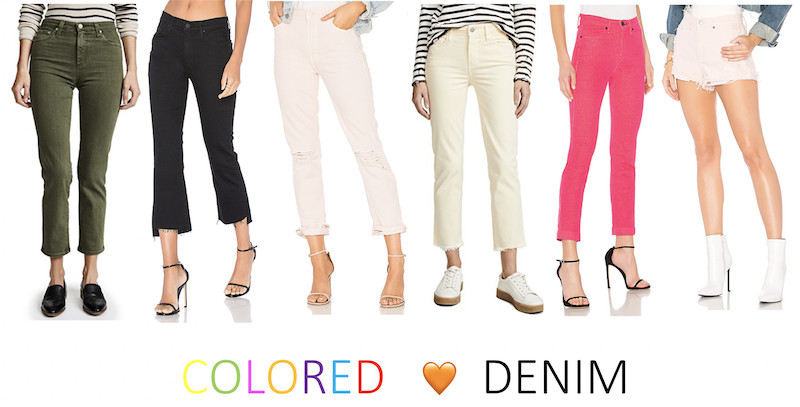 A new denim trend we all remember well is colored denim and guess what? For all you clothing hoarders out there, bring back all those colored denim pieces you held on to in hopes this day would come. For those of us who parted ways with all our colored pieces, there are some amazing new ways to wear this look. Tons of distressing, raw details and neutral takes on color like blush, pale yellow and army! Shop our favs of this denim trend below.